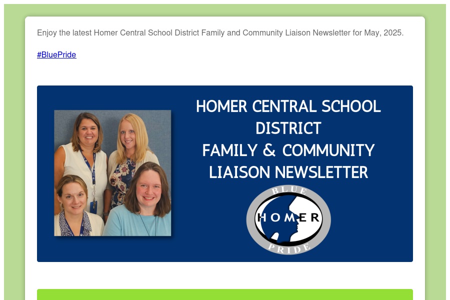 The latest Homer Central School District Family and Community Liaison Newsletter is now online!