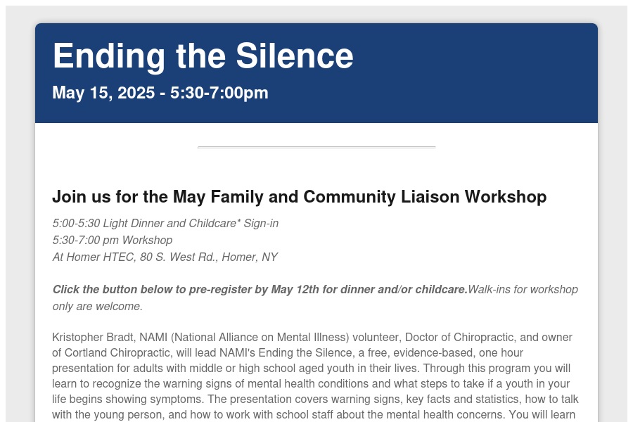 The latest Homer Central School District Family and Community Liaison Newsletter is now online!